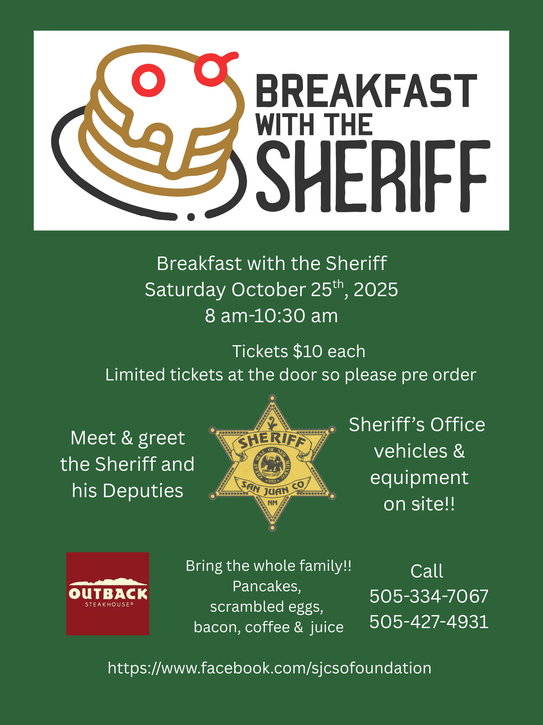 Come have breakfast at Outback with employees from the San Juan County Sheriff's Department!!