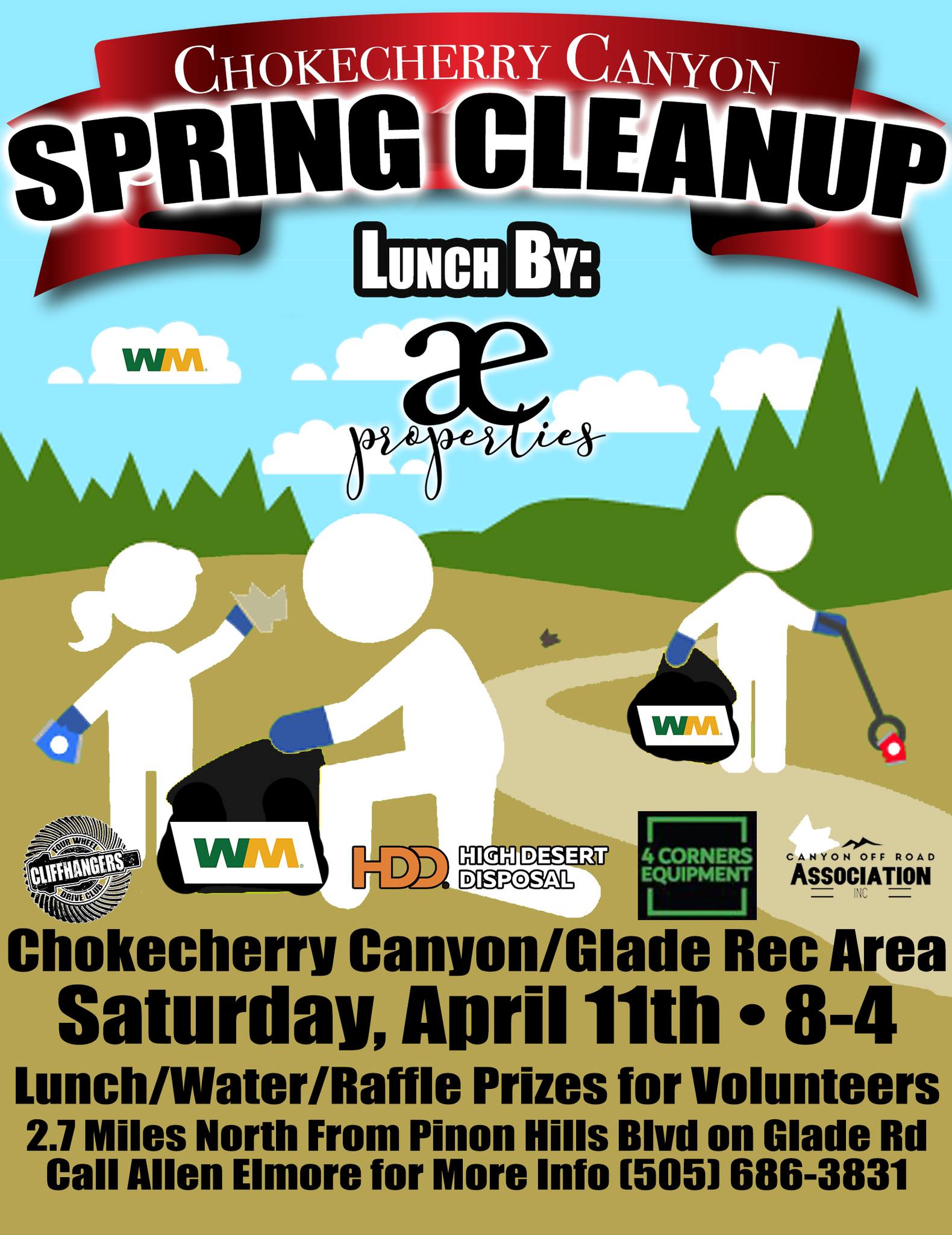 - Dumpsters donated by Waste Management will be located in the lot across from Brown Springs Campground, 2.7 miles north of Pinon Hills Blvd on Glade Road.