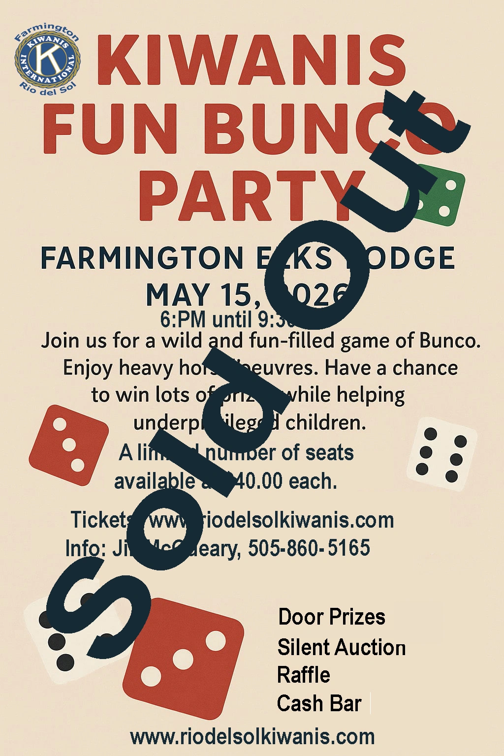 Join us for an evening of fun, laughter, and community support at the Kiwanis Fun Bunco Party—a lively fundraiser benefiting Kiwanis Coats, Shoes & Clothes for Kids!