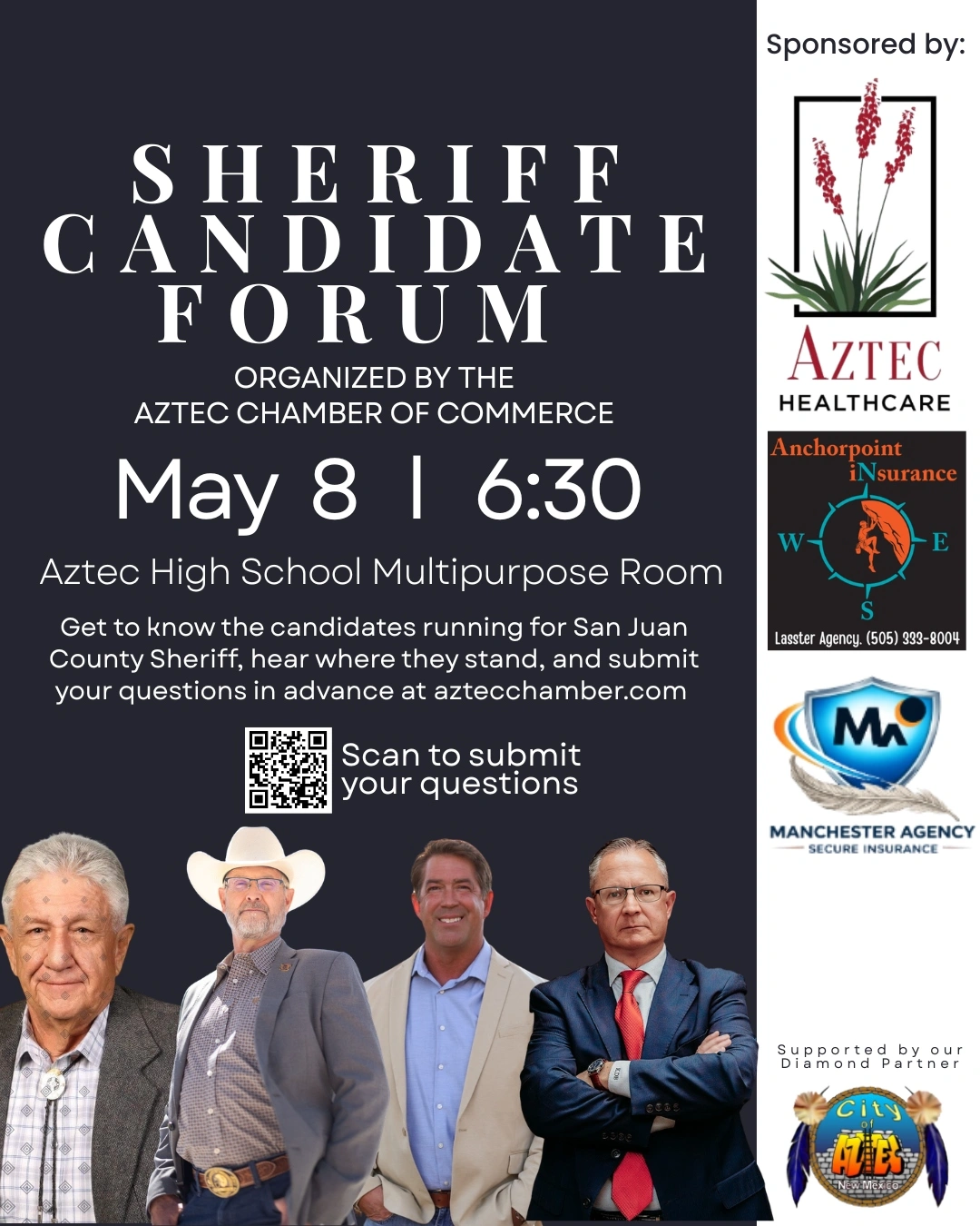 The Aztec Chamber of Commerce is hosting the 2026 San Juan County Sheriff Candidate Forum — a community forum designed to give residents a chance to hear directly from the candidates vying for one of the most important positions in our county.