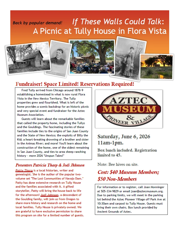 - thousands of artifacts on 3.5 acres in Historic Downtown Aztec.