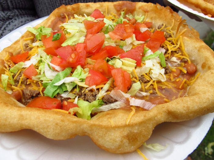 Navajo taco: Navajo fry bread topped with pinto beans, chile, cheese, lettuce, and tomato. For obvious reasons, it’s super delicious! This is very common in Farmington and the surrounding area, with many restaurants offering their variation.